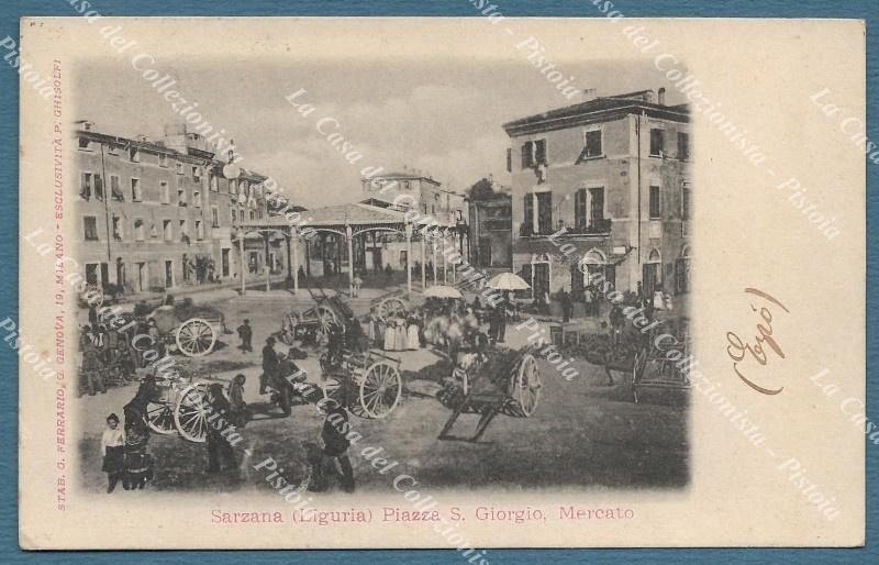 SARZANA, Spezia. Mercato in piazza S.Giorgio. Cartolina d'epoca viaggiata nel 1901. (Rif.F2300)