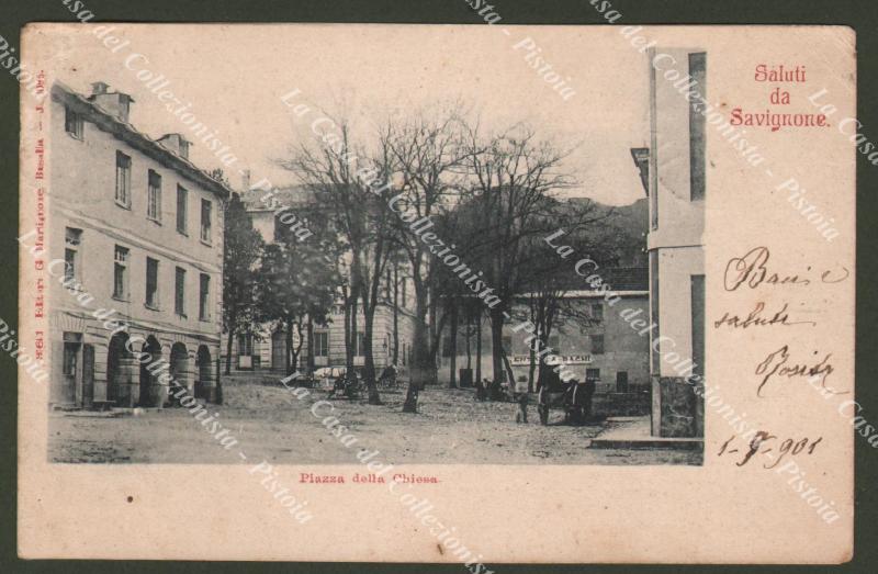 SAVIGNONE, Genova. Piazza della Chiesa. Cartolina d'epoca viaggiata nel 1901. (Rif.F2095)