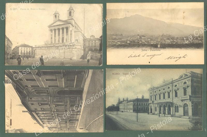 SCHIO, Vicenza. 4 cartoline d'epoca viaggiate 1901-1923. Una con francobollo asportato. (Rif.E4370)
