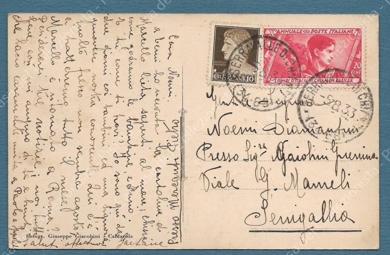 SERRAVALLE DI CHIENTI, Macerata. Vista del Castello. Cartolina d'epoca formato piccolo, viaggiata nel 1933. (Rif.F5420)