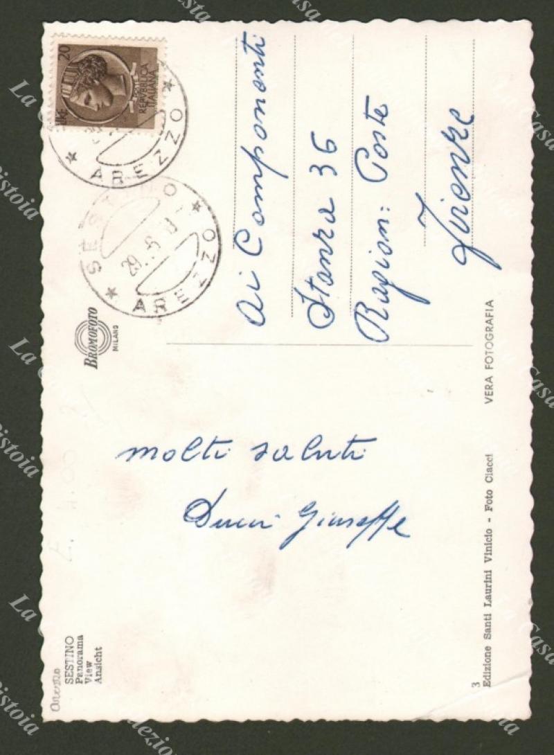 SESTINO, Arezzo. Cartolina d'epoca formato grande, viaggiata nel 1960. (Rif.F1523)