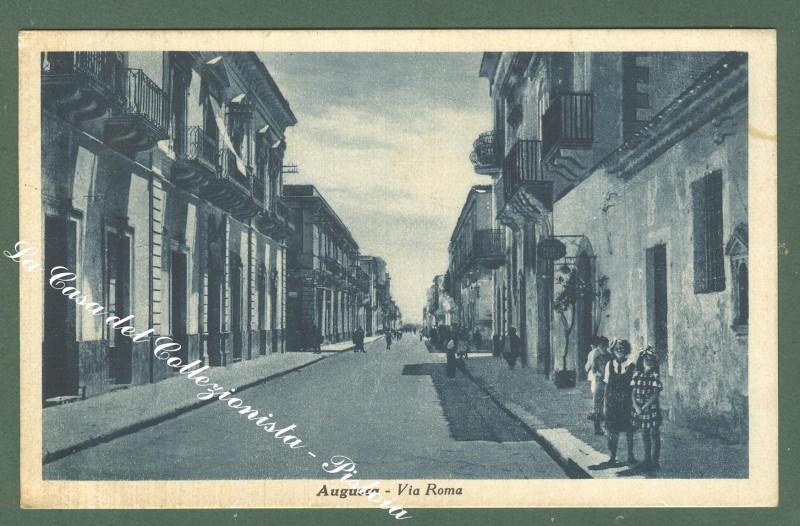 Sicilia. AUGUSTA. Via Roma. Cartolina d'epoca viaggiata.