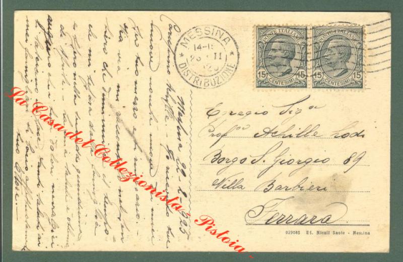 Sicilia. MESSINA. Viale S. Martino. Cartolina d'epoca viaggiata nel 1925. Ottima conservazione. (Rif.D543)