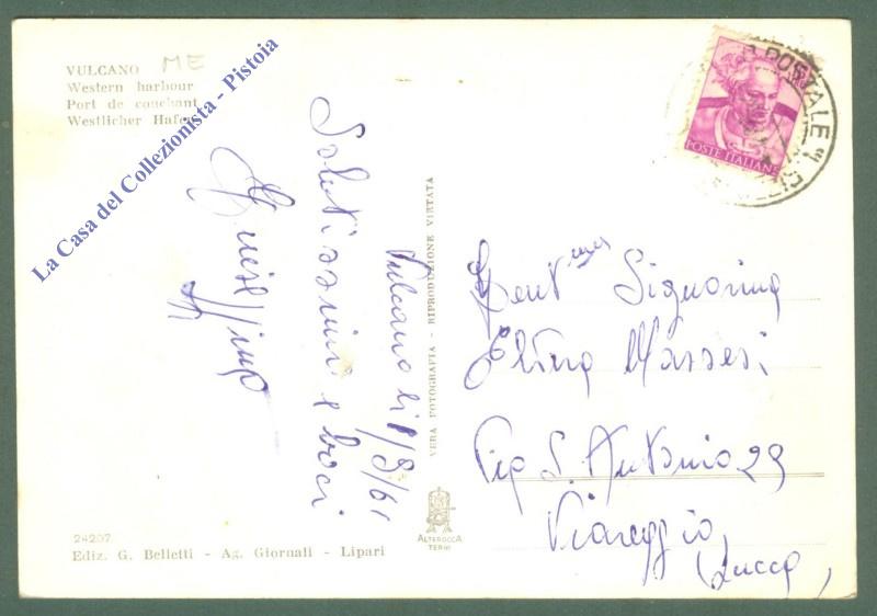 Sicilia. VULCANO, Messina. Porto di Ponente. Cartolina d'epoca viaggiata nel 1961. (Rif.D5709)