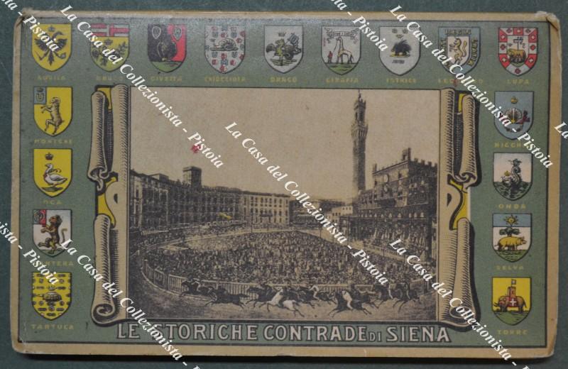 Siena. I PAGGI DELLE STORICHE CONTRADE. 17 litografie formato cartolina unite a fisarmonica. Dedica datata 1913.