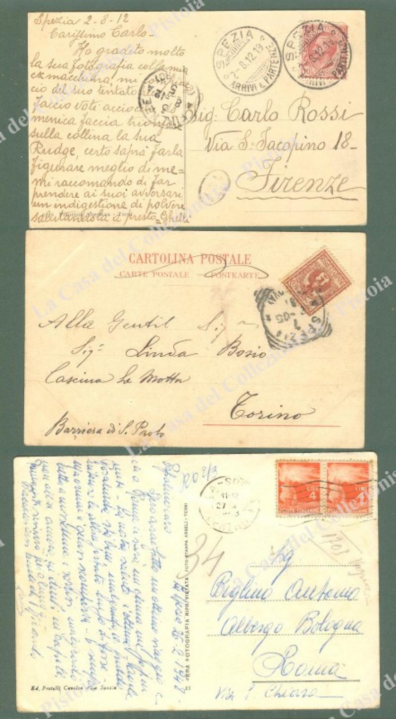 SPEZIA. 3 cartoline d'epoca viaggiate nel 1905, 1912, 1948