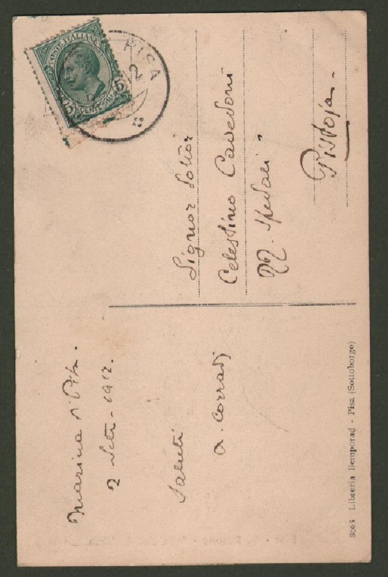 S.ROSSORE, Pisa. Sulla riva dell'Arno. Cartolina d'epoca viaggiata nel 1912. (Rif.F1975)
