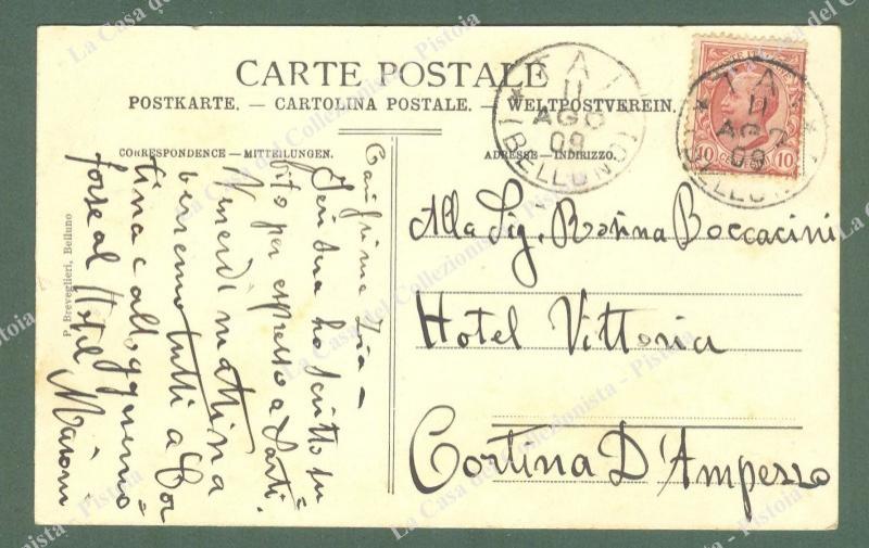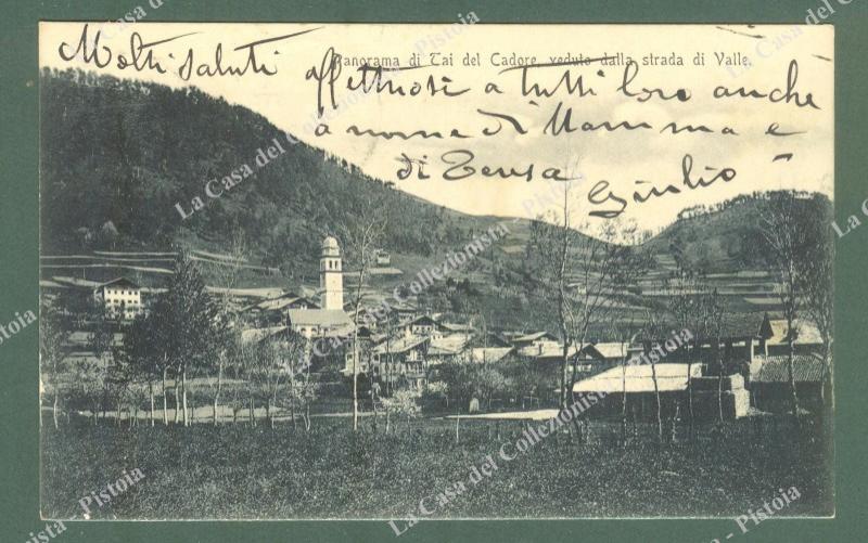 TAI DI CADORE, Belluno. Panorama e strada di Valle. Cartolina d'epoca viaggiata nel 1909. (Rif.E0845)