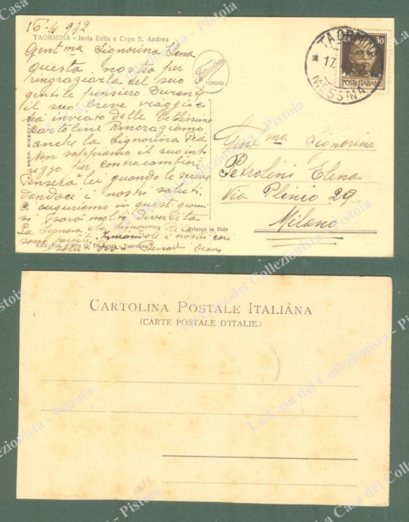 TAORMINA. 2 cartoline d'epoca (una viaggiata nel 1932)