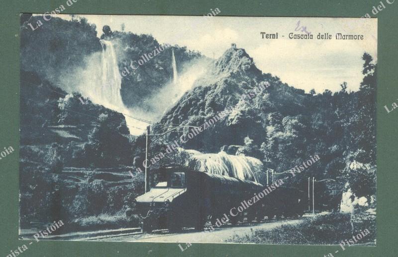TERNI. Cascata d. Marmore e treno. Cartolina d'epoca non viaggiata, circa 1920.