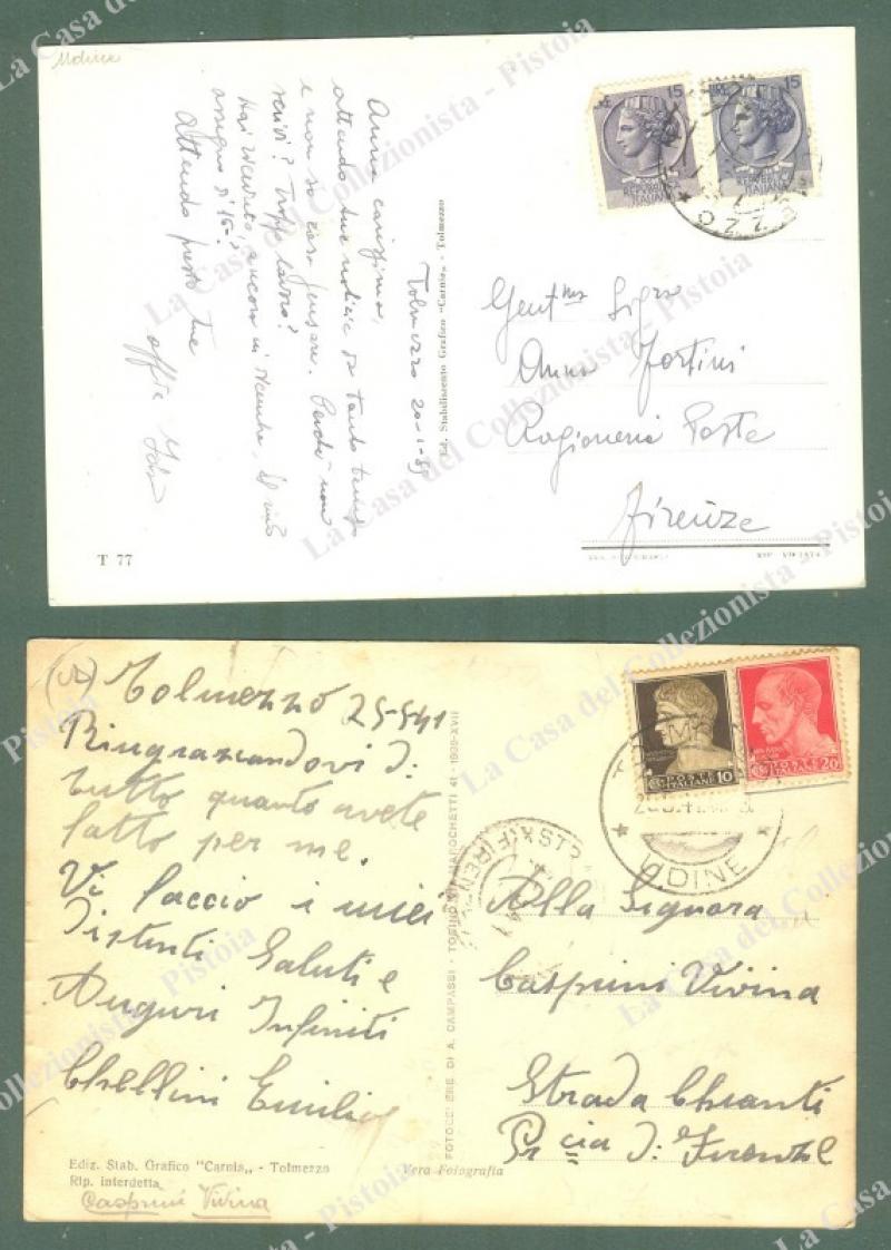 TOLMEZZO, Udine. 2 cartoline d'epoca viaggiate