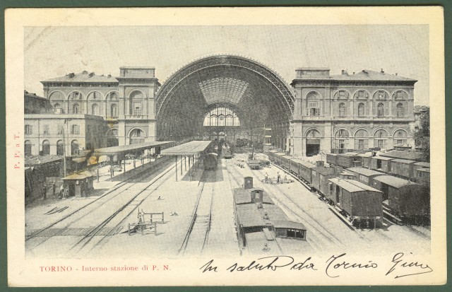 TORINO. Interno stazione. Cartolina d'epoca viaggiata nel 1902
