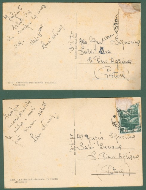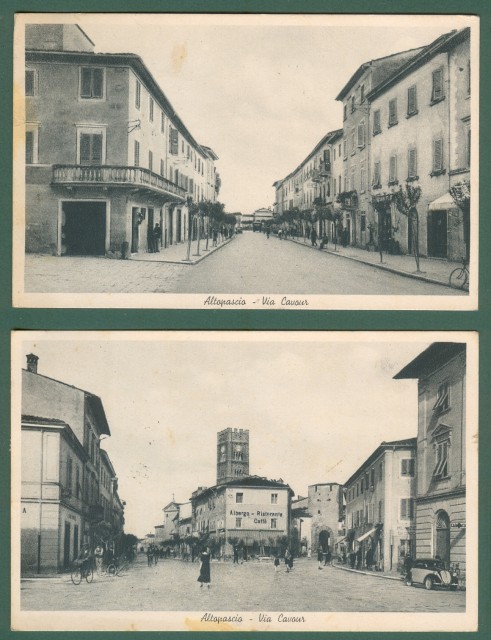 Toscana. ALTOPASCIO, Lucca. Via Cavour. Due cartoline d'epoca viaggiate nel 1951