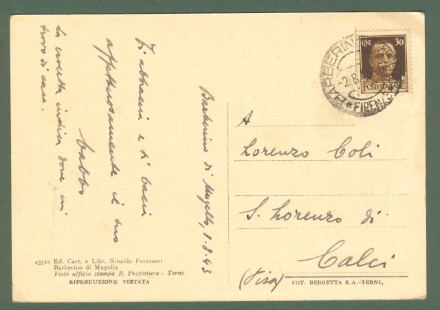 Toscana. BARBERINO DI MUGELLO, Firenze. Via Roma. Cartolina d'epoca viaggiata nel 1943.
