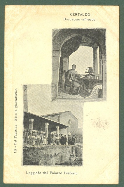Toscana. CERTALDO, Firenze. Loggiato del Palazzo Pretorio. Cartolina d'epoca non viaggiata, primi 1900.