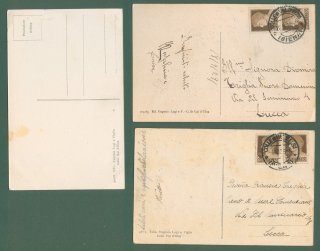 Toscana. COLLE VAL D'ELSA. Siena. Tre cartoline d'epoca (due viaggiate nel 1929)