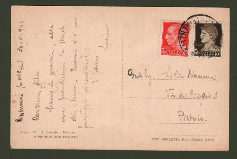 Toscana. CONSUMA, Firenze. Poggio Tesoro. Cartolina d'epoca viaggiata nel 1942. (Rif.D5441)