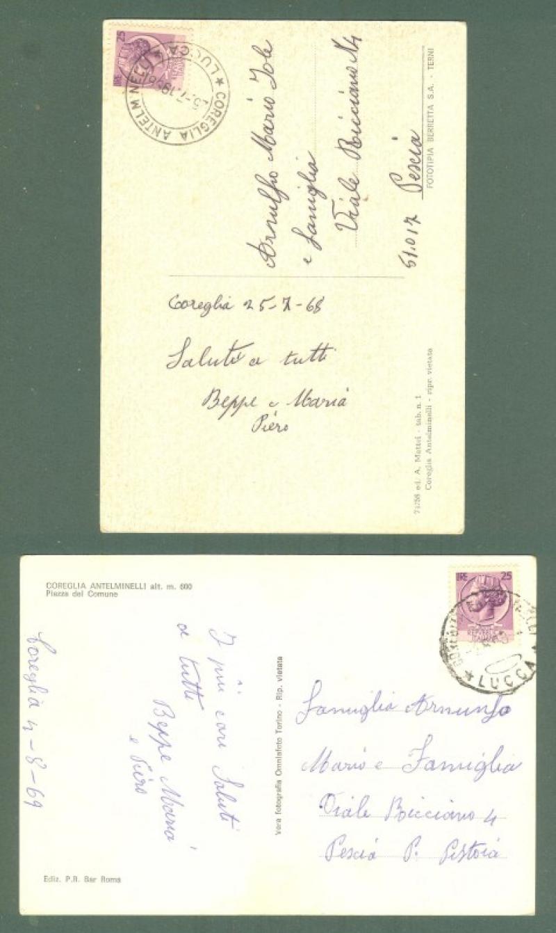 Toscana. COREGLIA ANTELMINELLI, Lucca. Due cartoline d'epoca viaggiate nel 1968/69. Ottima conservazione. (Rif.D4856)