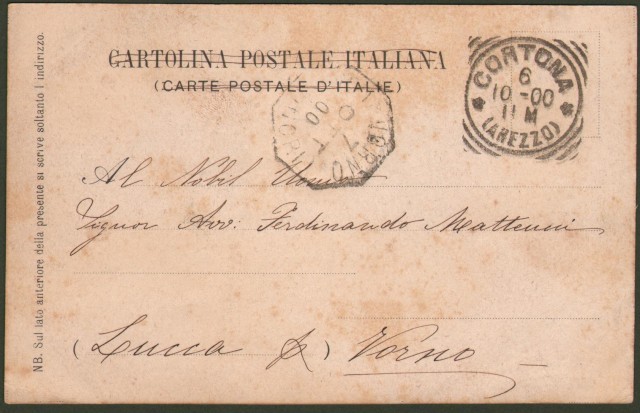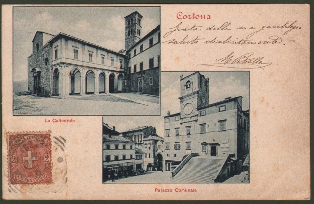 Toscana. CORTONA, Arezzo. Cartolina d'epoca viaggiata nel 1900.
