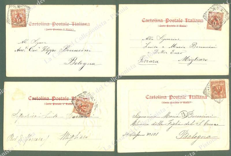 Toscana. MONTECATINI, Pistoia. 4 cartoline d'epoca con fregi a rilievo, viaggiate nel 1903.