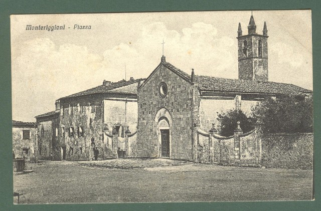 Toscana. MONTERIGGIONI, Siena. Piazza. Cartolina d'epoca, circa 1920.