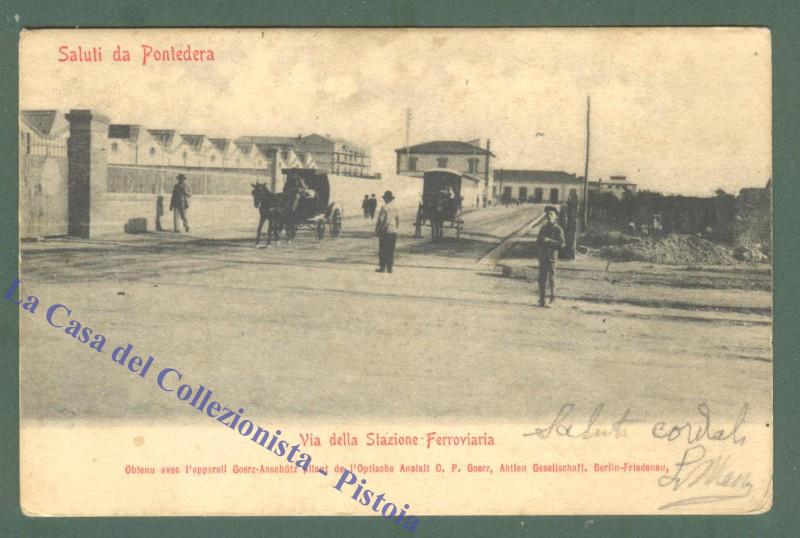 Toscana. PONTEDERA, Pisa. Via della Stazione. Cartolina d'epoca viaggiata primi '900. (Rif.D4802)