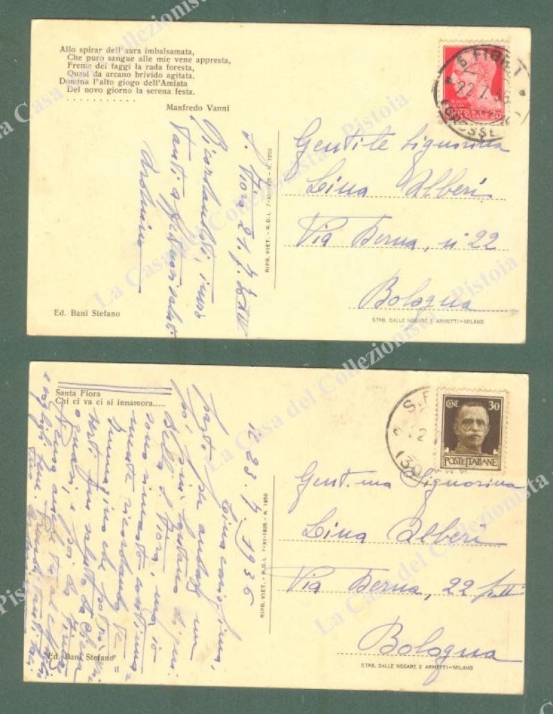 Toscana. SANTAFIORA, Grosseto. 2 cartoline d'epoca viaggiate nel 1936. Buona conservazione. (Rif.E3447)