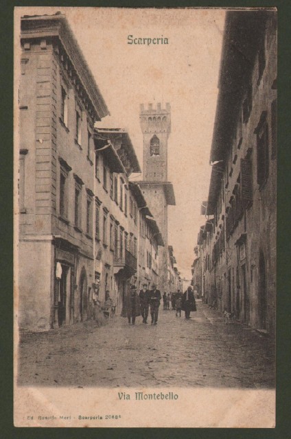 Toscana. SCARPERIA, Firenze. Via Montebello. Cartolina d'epoca non viaggiata, inizio '900. Conservazione buona eccetto impronta da album sul retro. (Rif.C9921)