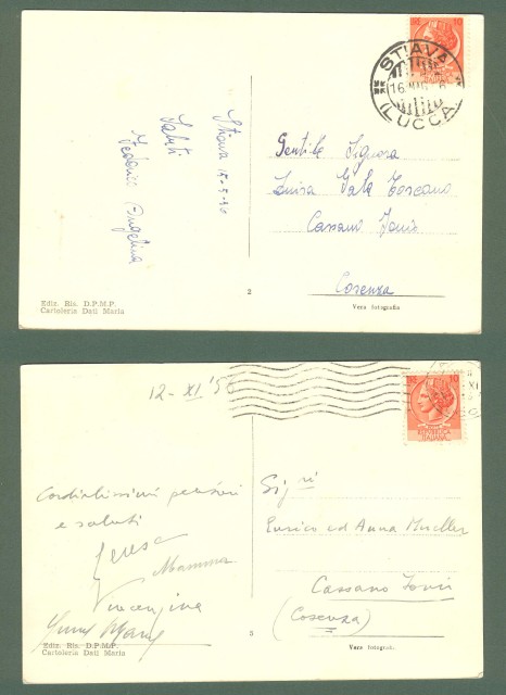 Toscana. STIAVA, Lucca. Due cartoline d'epoca viaggiate nel 1956.