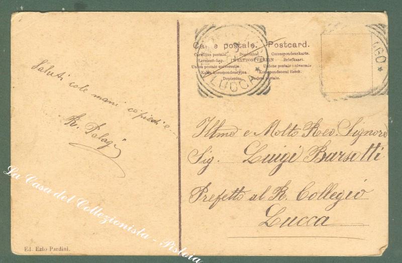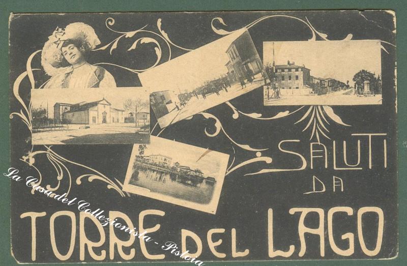 Toscana. TORRE DEL LAGO, Lucca. Saluti. Cartolina d'epoca viaggiata inizio '900. Francobollo asportato. (Rif.D2816)