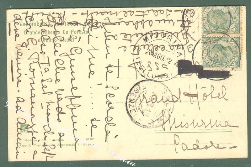 Toscana. VALLOMBROSA, Firenze. Grande albergo. La Foresta. Cartolina d'epoca viaggiata nel 1912. Ottima conservazione. (Rif.D3890)