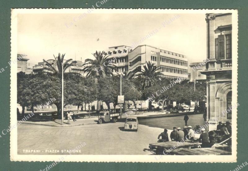 TRAPANI. Piazza Stazione. Cartolina d'epoca viaggiata nel 1960