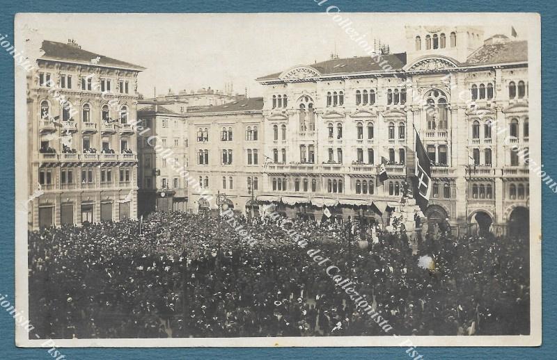 TRIESTE. Piazza principale gremita di folla. Cartolina d'epoca, circa 1919