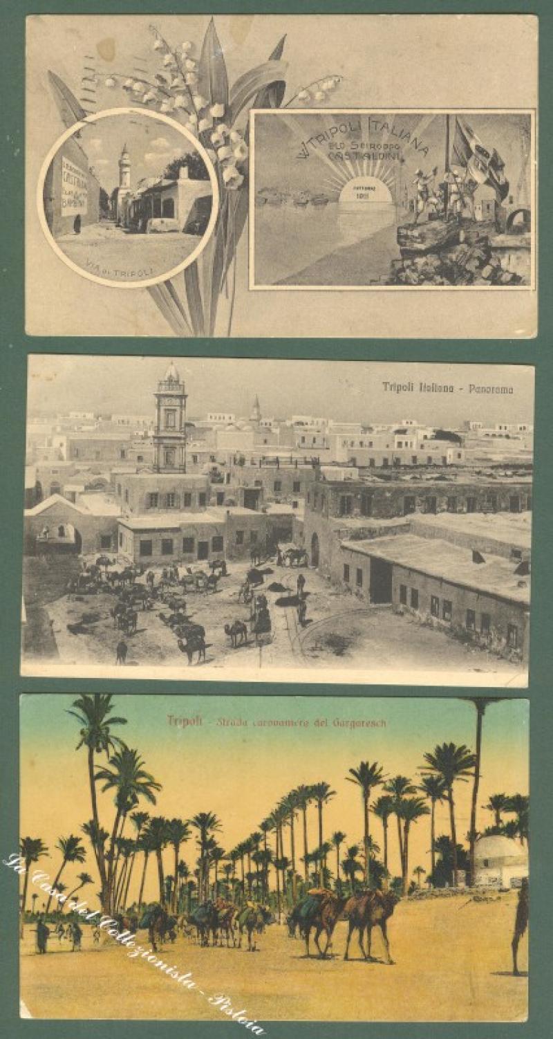 TRIPOLI, Libia. Tre cartoline d'epoca viaggiate.