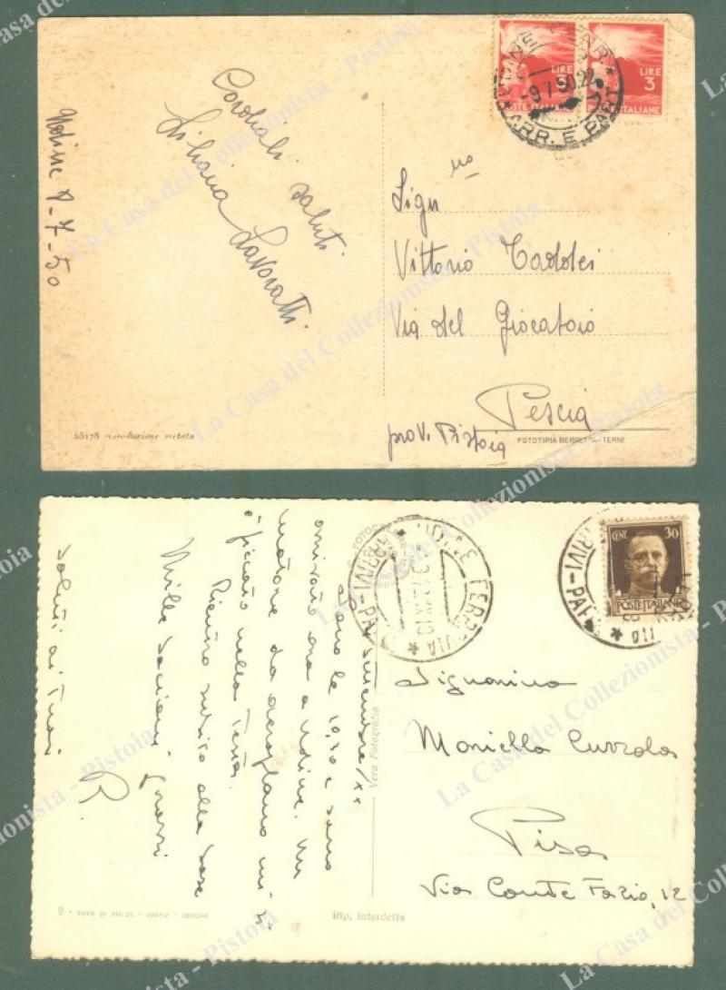 UDINE. 2 cartoline d'epoca viaggiate nel 1942 e 1950. (Rif.E3737)