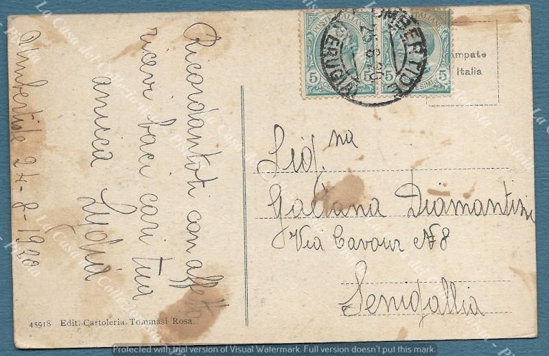 UMBERTIDE, Perugia. Piazza XII Settembre. Viaggiata nel 1920. Macchiata a retro. (Rif.F5263)
