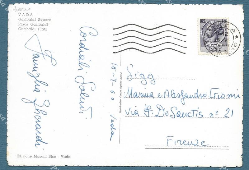VADA, Livorno. Piazza Garibaldi. Cartolina d'epoca viaggiata nel 1960. (Rif.F3845)