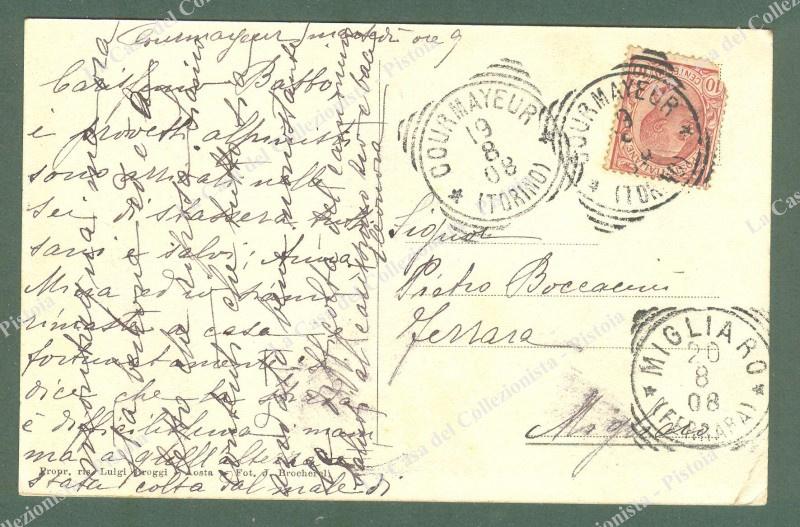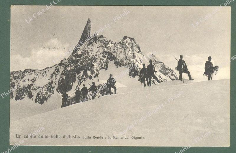 VAL D'AOSTA. Carovana alpinistica e punta del Gigante. Cartolina d'epoca viaggiata nel 1908. Ottima conservazione. (Rif.E0483)
