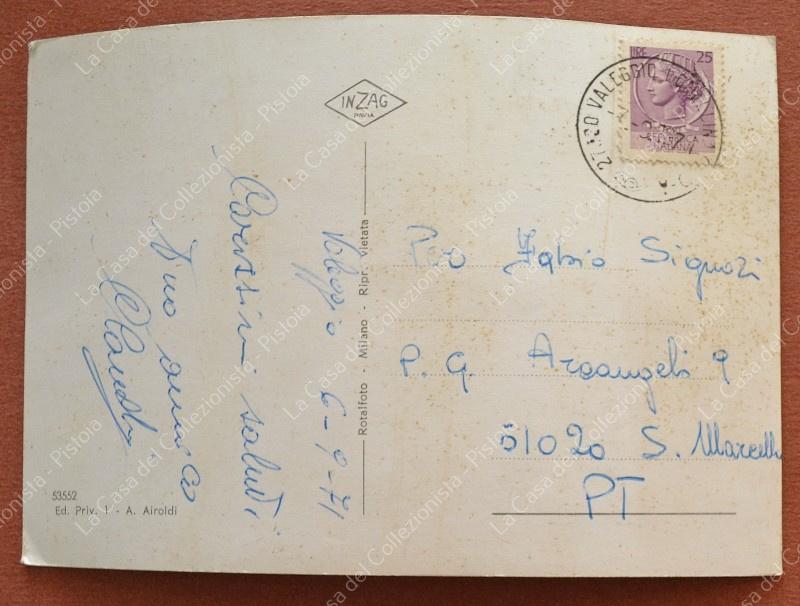 VALEGGIO LOMELLINA, Pavia. Saluti da. Cartolina d'epoca formato grande, viaggiata nel 1971. Sbiadimenti a retro. (Rif.F6501)