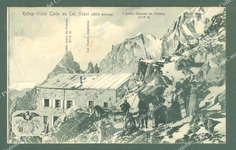 Valle d'Aosta. RIFUGIO ALBERGO TORINO, Colle del Gigante. Cartolina d'epoca viaggiata nel 1908. Ottima conservazione. (Rif.E0474)