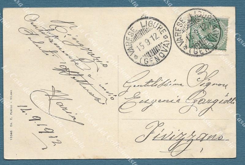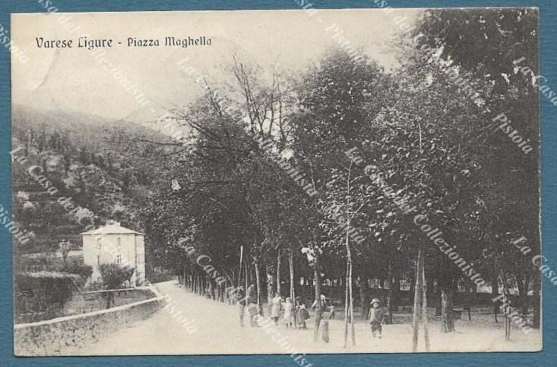 VARESE LIGURE, Genova. Piazza Maghella. Cartolina d'epoca viaggiata nel 1912. (Rif.F2301)