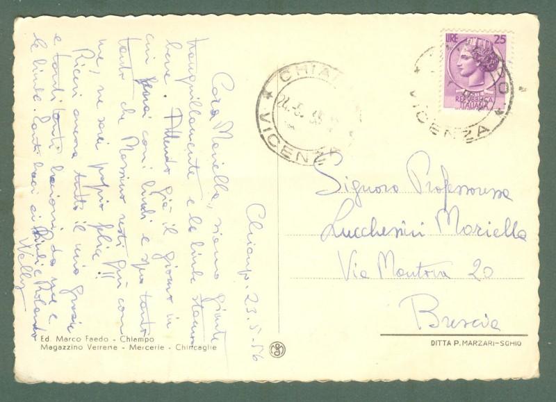Veneto. CHIAMPO, Vicenza. Cartolina d'epoca viaggiata nel 1956