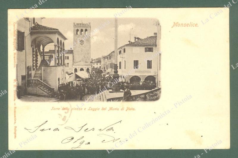 Veneto. MONSELICE, Padova. Torre della piazza e Loggia del Monte di Pietà. Cartolina d'epoca viaggiata nel 1900.