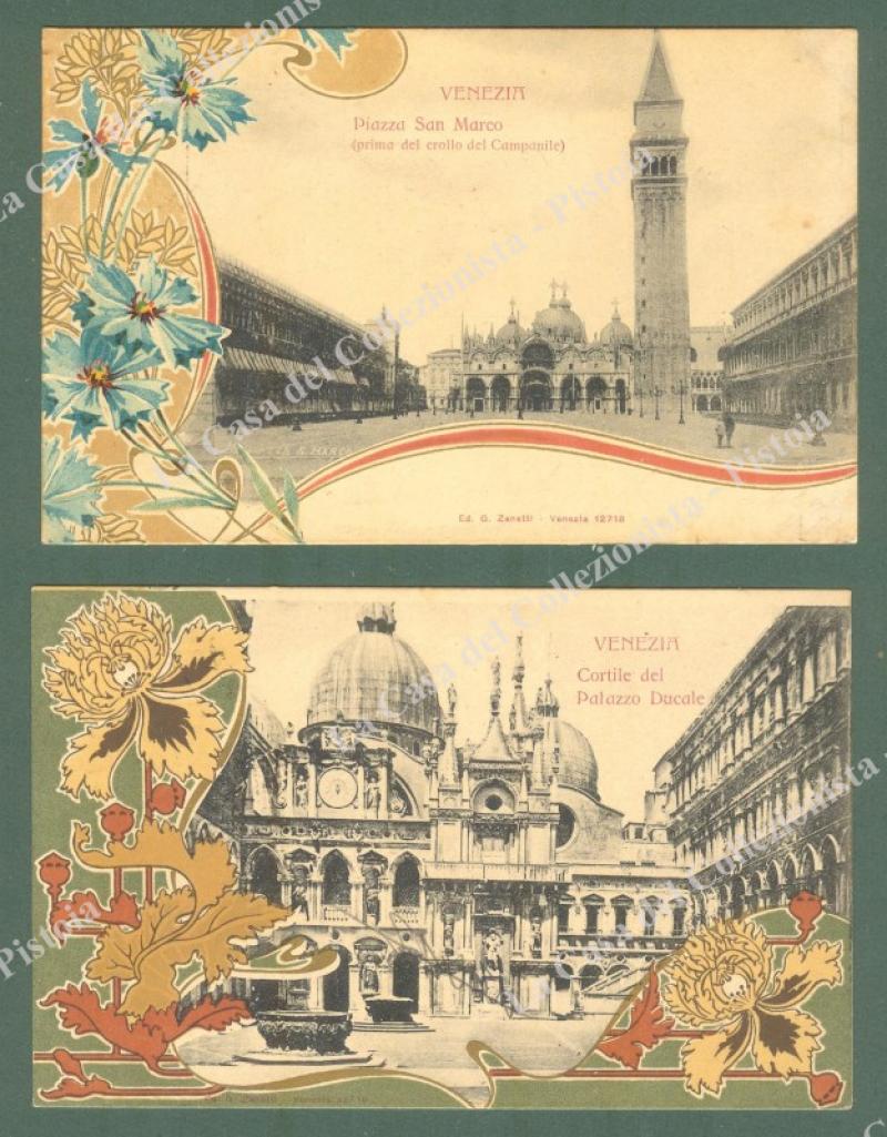 VENEZIA. 2 cartoline d'epoca con splendidi motivi liberty. Cartolina d'epoca nel 1903