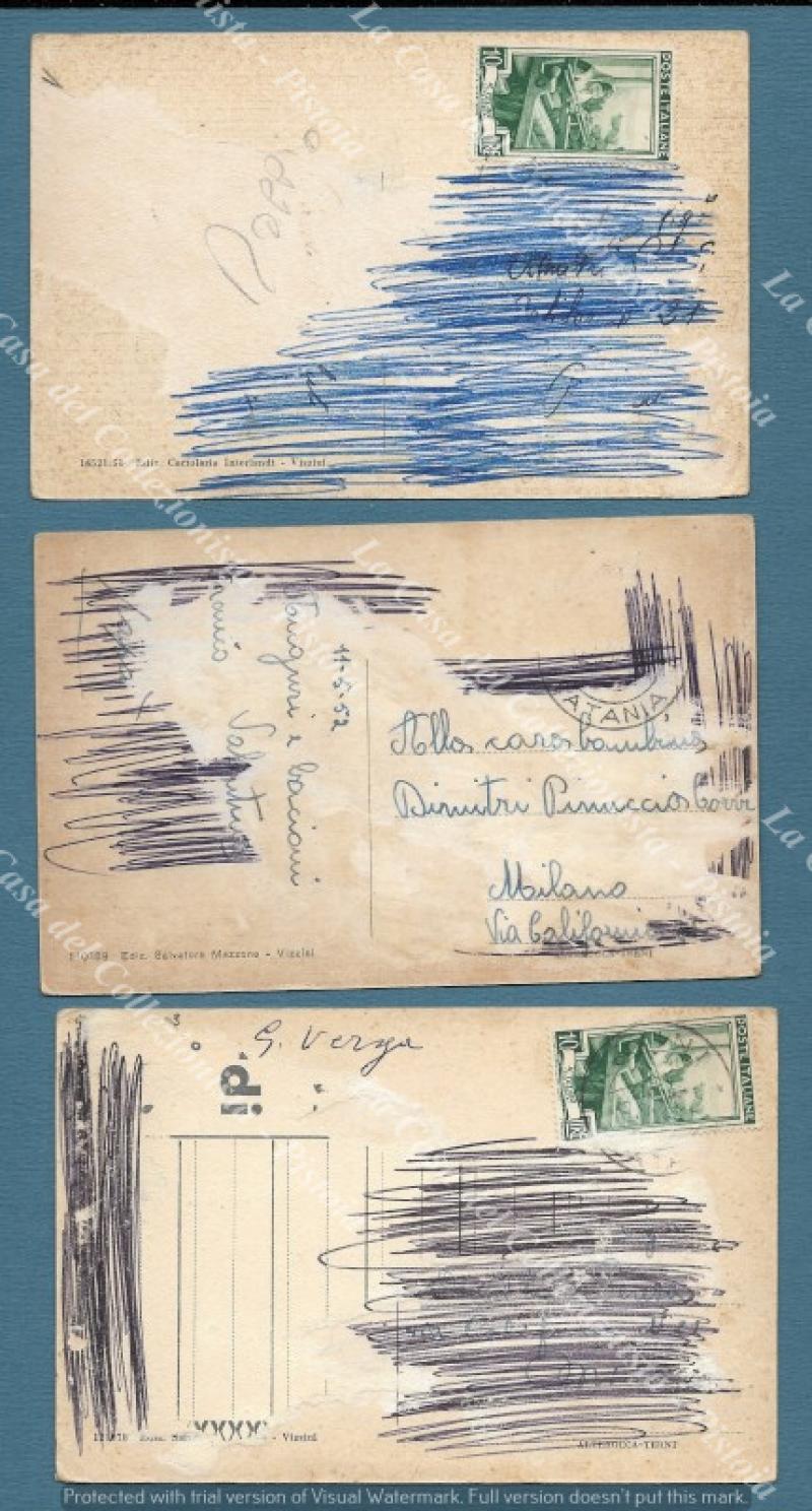 VIZZINI, Catania. 3 cartoline d'epoca anni 1940, ma adoperate in seguito.