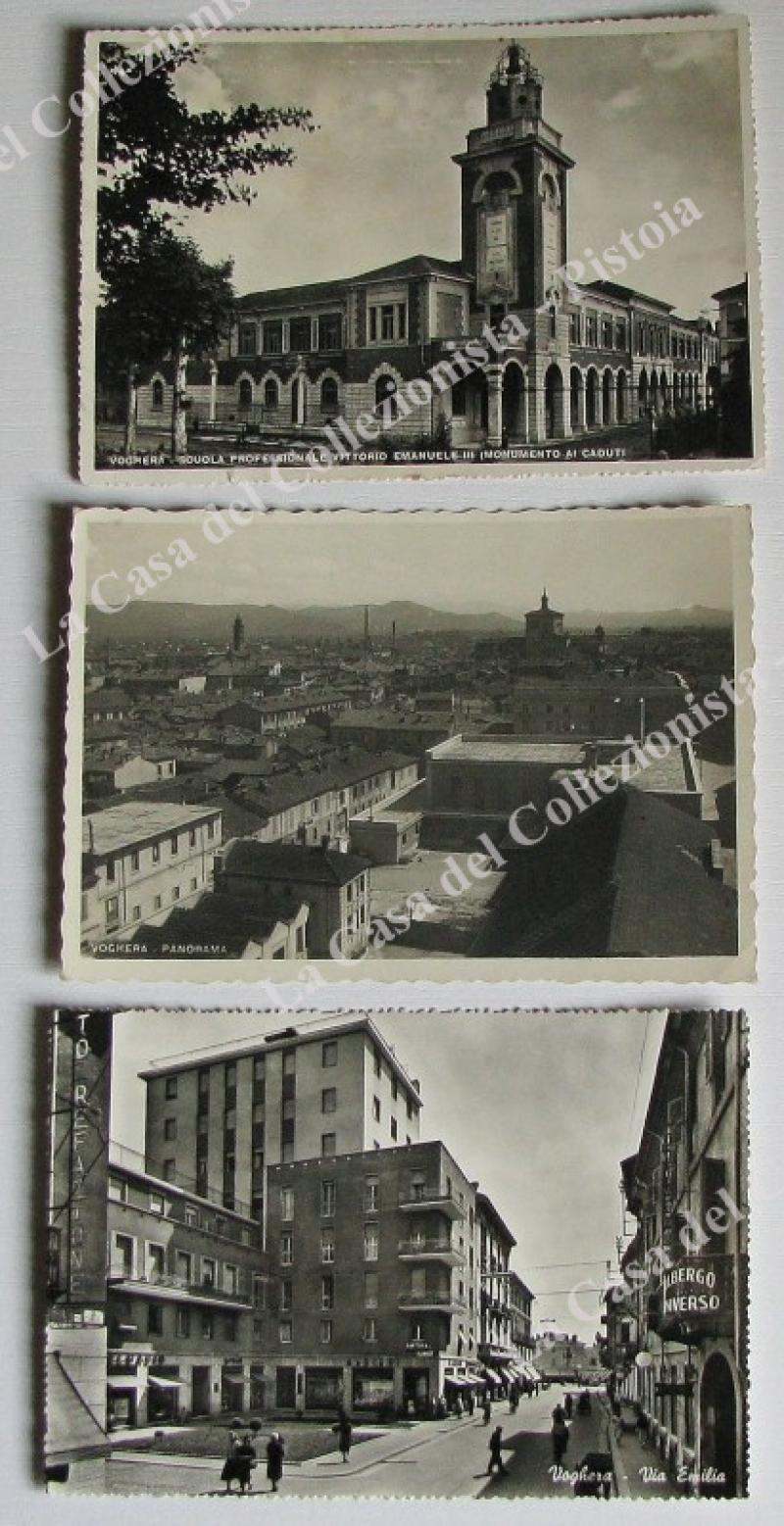 VOGHERA, Pavia. 3 cartoline d'epoca formato grande (2 viaggiate nel 1938 e 1948). (Rif.E4022)