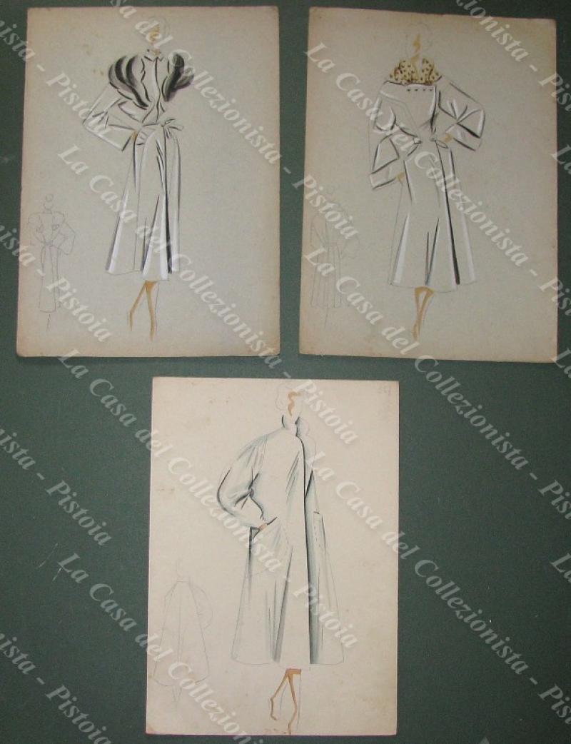 ALTA MODA. 3 figurini anni '50 disegnati a mano e acquerellati. Circa cm 23x33 ciascuno. (Rif.E4851)
