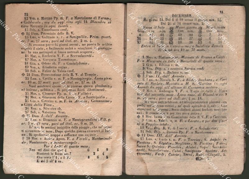 Anno 1847. ALMANACCO. BARBA NERA. MOTI CELESTI O SIANO PIANETI SFERICI calcolati per tutta l’Italia e sue Isole e per gran parte di Europa, ed in particolare per il Polo 42 di Roma e 41 di Napoli. Levar del Sole, mutazioni della Luna, Cabale per il gioco del Lotto, le Fiere, ecc..