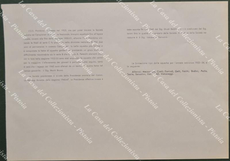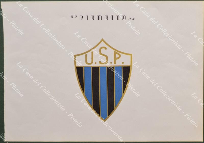 CALCIO. U. S. P. PIOMBINO. Inizio anni '50. Stemma originale in cromolitografia su tavola di cm 34x24. Unita pagina con la storia della società. Ottima conservazione. (Rif.F5099)