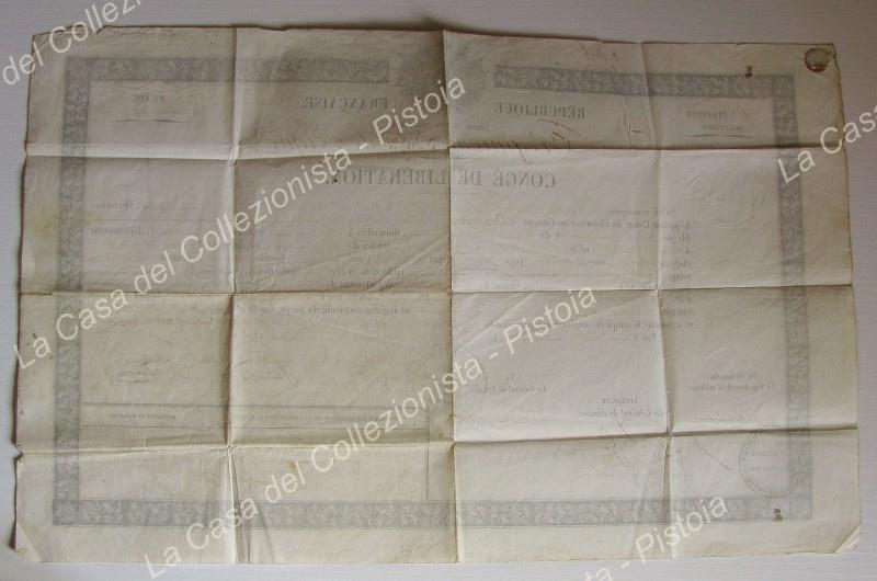 CONGEDO del 1850. Documento a stampa completo a meno di cm 41x26. Firme e bolli. (Rif.E4387)